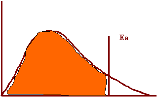 25. Draw a collision energy distribution diagram for a reaction where the y axis is fraction of collisions and the x axis is collision energy. Draw the Ea line showing about 10% of the collisions having sufficient energy. Draw the Ea line for the catalyzed reaction where 20% have sufficient energy.