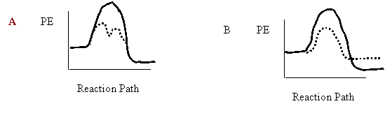 12. Which point on the diagram above represents the potential energy of the activated complex formed in the uncatalyzed reaction?