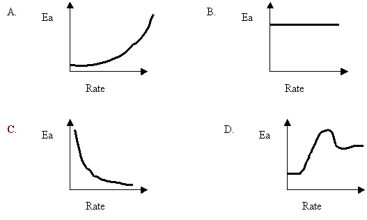 15. A certain reaction is able to proceed by various mechanisms. Each mechanism has a different Ea and results in a different overall rate. Which of the following best describes the relationship between the Ea values and the rates?