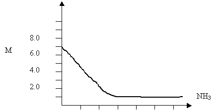 A 1.00 L container is filled with 7.0 mole NH3 and the system proceeds to equilibrium as indicated by the graph.